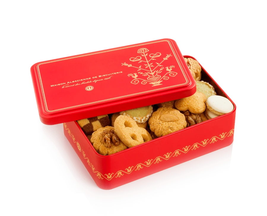 In this assortment, you'll discover traditional creations with all-butter Bredele such as the Spritz and Linzer, as well as our Maison's very own creations, such as the Pistachio and Almond Crunch Butter Biscuit. A stunning range of biscuits flavoured with spices, cocoa, vanilla, and even citrus fruit!