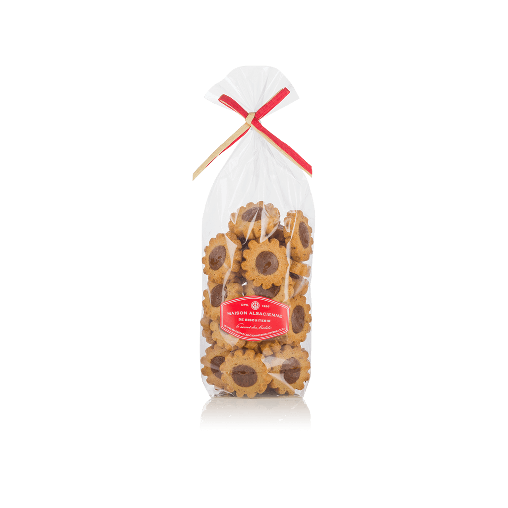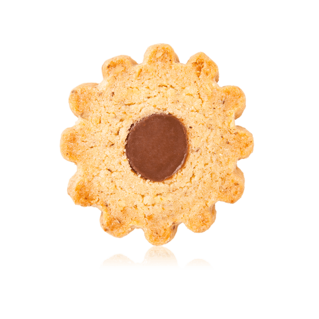 A delicious all-butter biscuit holding a silky, smooth hazelnut praline centre. This exceptional Bredele stands out with its delicacy, and you'll understand why from your very first bite…