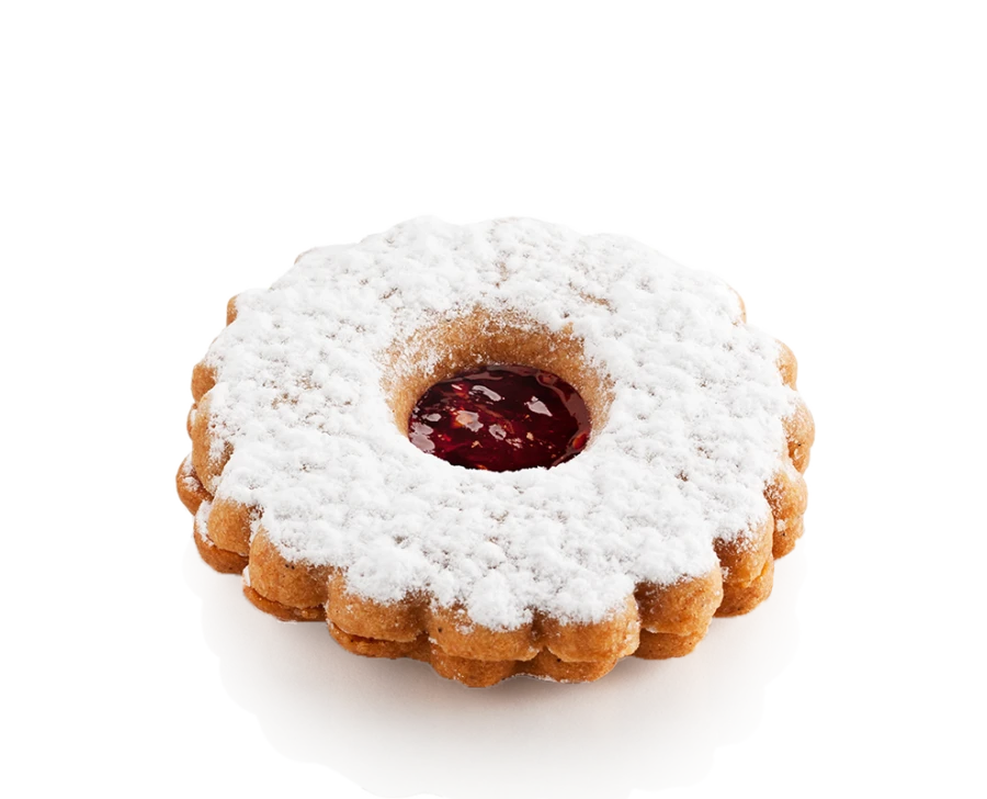The exceptional decadence of the Spitzbuebe is in part thanks to the fact that this delicacy offers up a duo of biscuits in one! Flavoured with cinnamon and decorated with icing sugar, these two fine, all-butter biscuits are joined with an exquisite raspberry preserve filling, framed by the open space at the centre…