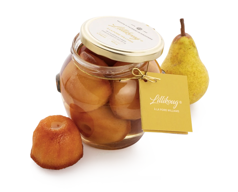 Just like our Lillikoug® infused with Damson Plum Brady, Alsace Kirsch or Marc de Gewurztraminer, our Lillikoug® infused with Williams Pear invites lovers of the finer things in life to experience the fruits of two icons of our regional identity: our arts of pâtisserie and biscuiterie, and the art of distilling.