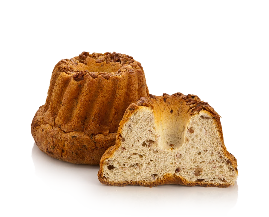 The iconic Alsace brioche in a savoury interpretation: A soft brioche filled with smoked lardons and decorated with walnut kernels. A must-have for aperitifs and big events in Alsace!