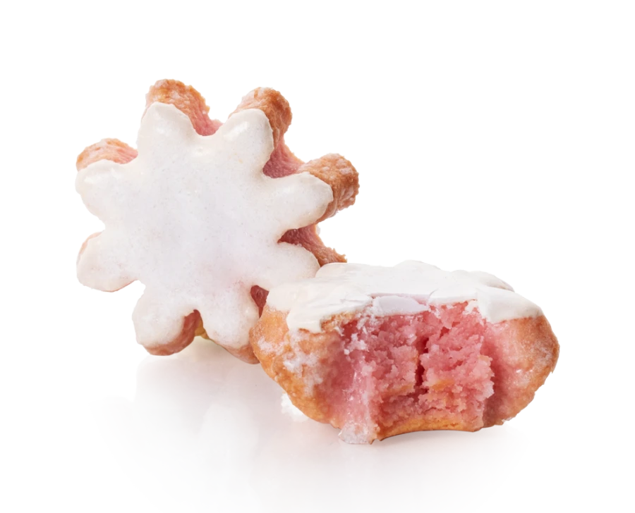 The iconic flower adorning the balconies and other timbered architecture of Alsace, this creation offers an original take on the wonderful geranium. With its sumptuously rich almond-based dough, its flower shape and unique geranium flavouring, this Bredele invites you along on an adventure to the heart of our beautiful region.