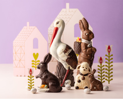 À Pâques, nos pâtissiers et nos chocolatiers ont envisagé la savoureuse rencontre de trois vedettes faisant partie intégrante de nos traditions pascales. Savoir-faire et talents conjugués ont ainsi donné naissance à nos biscuits de Pâques (Osterbredele), à nos chocolats de Pâques (moulages) ainsi qu’à nos œufs de Pâques.