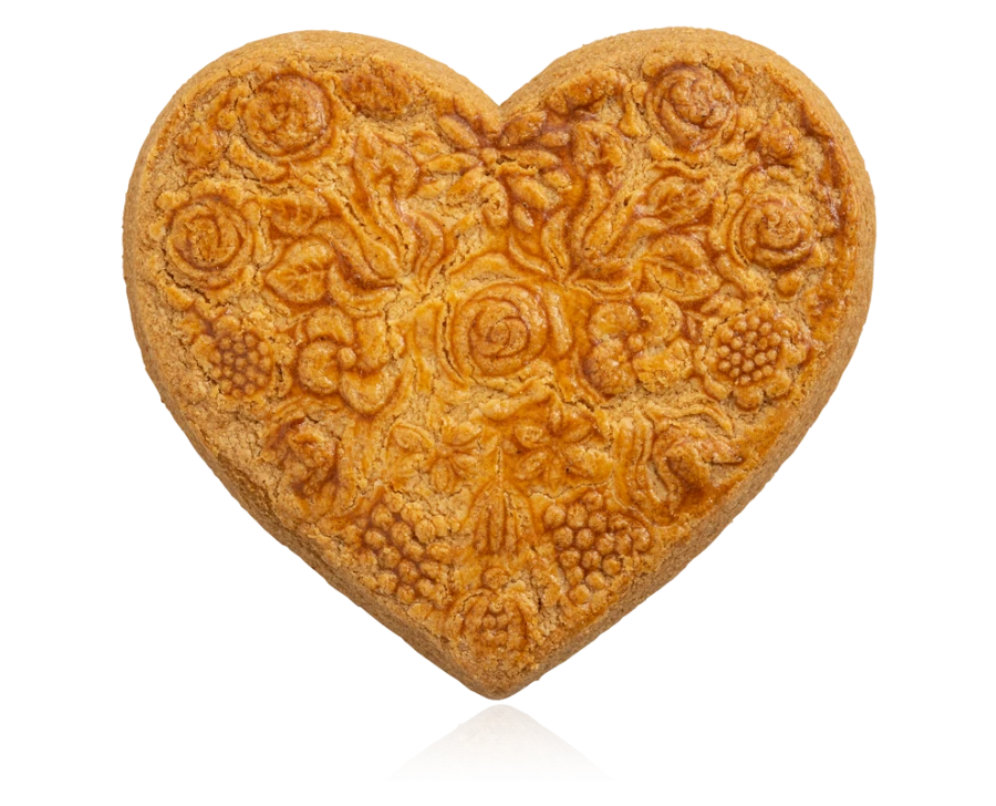 Avant qu’une cuisson prolongée ne lui confère de subtiles notes caramélisées, nos pâtissiers l’ornent, à l’aide d’un moule à Springerle, de motifs floraux finement gravés dans la pâte. Sa texture tendre et croquante révèle en bouche toute la douceur de la vanille, portée par des nuances suaves de caramel. Conteur d’amour et de savoir-faire, notre Cœur Vanillé est à offrir ou à partager avec ceux qui comptent vraiment…