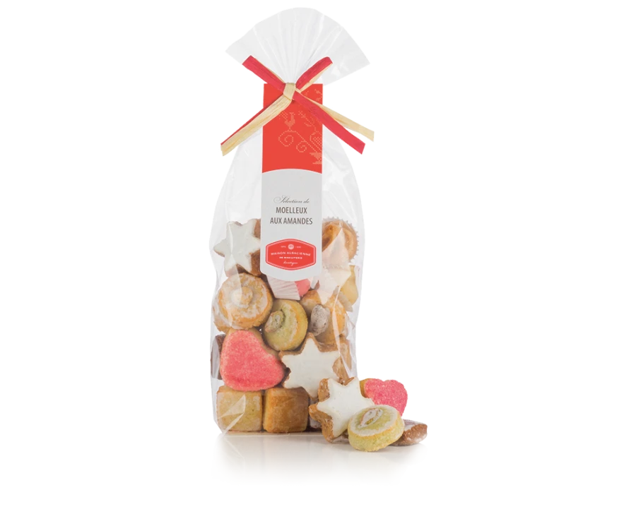 Nous avons réuni pour vous dans cet assortiment toutes les recettes de Bredele moelleux de notre Maison : des créations originales inspirées par la tradition biscuitière de notre région. Nos pâtissiers confectionnent ces petits gâteaux à partir d’amandes : c’est cette pâte riche en amandes qui leur confère leur texture fondante et si agréable en bouche.