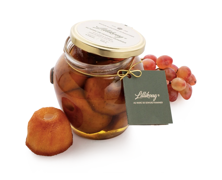 Partez à la découverte de l’esprit talentueux de notre belle région avec le Lillikoug® au Marc de Gewurztraminer : un Kougelhopf immergé dans un délicat sirop alcoolisé. Véritable exaltation pour les palais, cette alliance insolite est une ode au savoir-faire pâtissier de notre terroir et à son art de la distillerie.