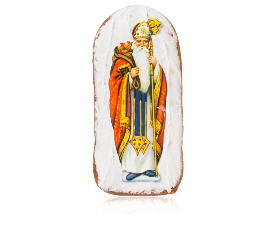 Célébrée chaque année le 6 décembre, la légende populaire raconte comment le bon Saint-Nicolas, évêque de Myre, ressuscita trois petits innocents victimes d'un boucher cupide et devint le saint protecteur des enfants. Aussi, le matin du 6 décembre, les enfants sages découvrent les cadeaux laissés par Saint Nicolas durant la nuit : jouets et douceurs, parmi lesquelles le pain d’épices à son effigie. Il offre ainsi un plaisir gourmand aux enfants tout au long des goûters de décembre !