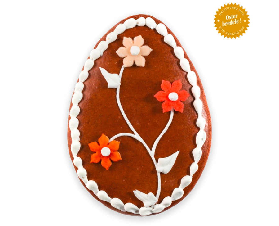 Les fêtes de Pâques ne sont plus très loin ! Alors peut-être êtes-vous déjà à la recherche d’un cadeau qui saura séduire par son authenticité et son originalité ? Dans la plus pure tradition alsacienne, notre Maison a imaginé un pain d'épices moelleux en forme d'œuf, décoré à la main de motifs faits de glace royale et agrémenté de petites fleurs en pâte d'amande. Un cadeau inattendu et authentique pour vos fêtes de Pâques !